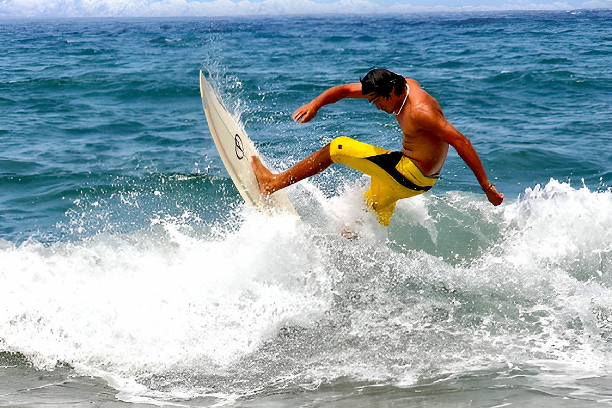The beach features golden sands and clear blue waters, featuring moderate waves that cater to surfers from novices to seasoned pros. Its laid-back atmosphere and relaxed vibe draws a diverse crowd of both local and international visitors.